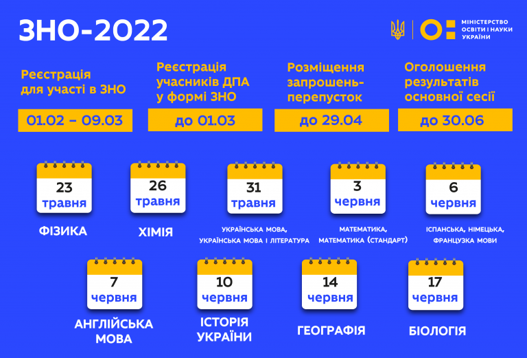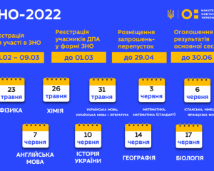 Графік проведення ЗНО - 2022
